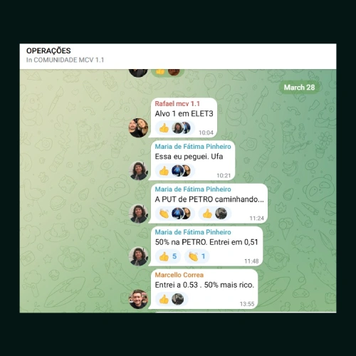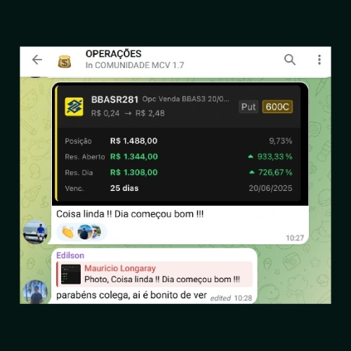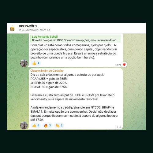 Alunos que seguem o Método 3D relatam crescimento de 10% a 30% no capital inicial já no primeiro mês, aplicando operações de baixo risco e alta probabilidade.